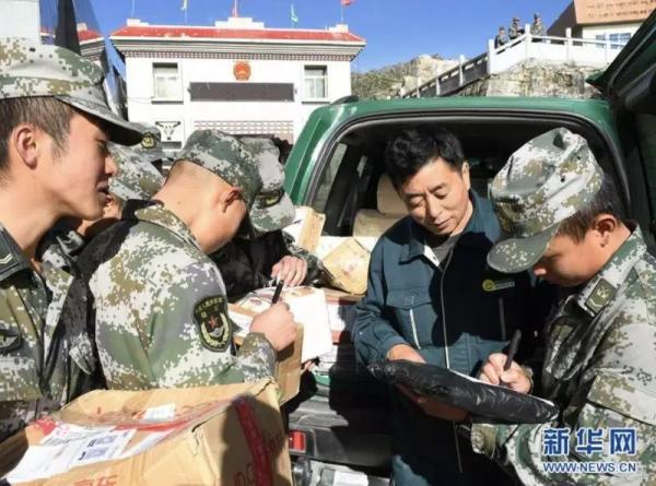 亞林為駐守在乃堆拉哨所的戰(zhàn)士們分發(fā)郵包。