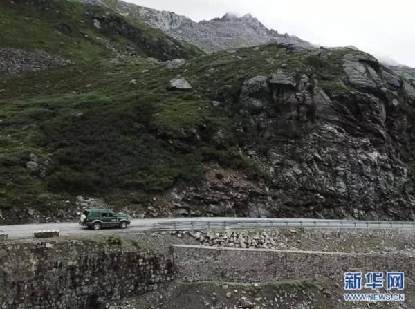 在崎嶇陡峭的山路上,亞林駕駛郵車由縣城趕往乃堆拉哨所投遞、交換郵件。