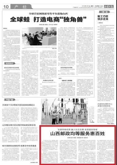 目前,山西郵政已經形成了公司黨組對郵政普遍服務和特殊服務工作全面負責,一個牽頭部門、兩個執(zhí)行部門、四個保障部門、四個支撐部門和一個監(jiān)督部門的普遍服務運營機制,確保普遍服務工作的落實橫到邊、豎到底。