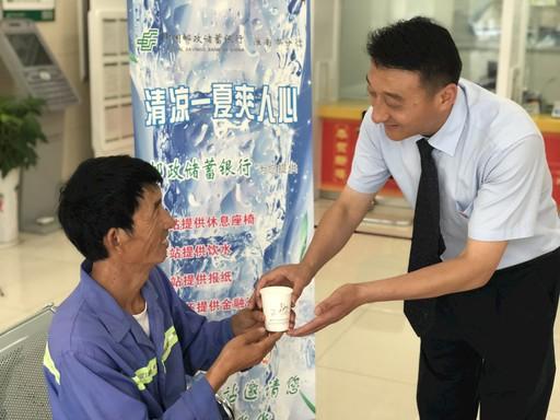 此外,在羅光明的建議下,淮南市分行以網(wǎng)點(diǎn)為依托,建立了19個(gè)“怡心小站”為戶(hù)外工作者和當(dāng)?shù)厝罕娝颓鍥?,羅光明經(jīng)常會(huì)邀請(qǐng)環(huán)衛(wèi)工人、執(zhí)勤民警、快遞員、外賣(mài)員等前往“怡心小站”休憩并送上解暑茶水?!叭缃竦洁]儲(chǔ)銀行辦業(yè)務(wù),碰到下雨天還可以免費(fèi)借傘,這里的服務(wù)太周到了。”王女士由衷地感慨。不僅在酷熱天氣為辛苦奔波的戶(hù)外工作者送清涼,羅光明還在網(wǎng)點(diǎn)配備了誠(chéng)信便民傘。每到下雨天,在淮南市的大街小巷上,一把把印有“中國(guó)郵政儲(chǔ)蓄銀行”的便民雨傘猶如一張張笑臉,一點(diǎn)一滴中溫暖著萬(wàn)千大眾。