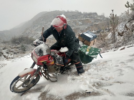 連日來,甘肅多地普降大雪,連續(xù)的風(fēng)雪惡劣天氣給正值高峰的“雙11”投遞工作帶來了嚴峻考驗,尤其是在路況很差的鄉(xiāng)村地區(qū)。但投遞員們不懼風(fēng)雪,全力以赴,準確、及時地將一件件包裹送到用戶手中,至11月19日,甘肅郵政“雙11”進口郵件妥投率為95%。圖為11月16日,慶陽市華池縣城壕鎮(zhèn)郵政所鄉(xiāng)郵員趙元瑞冒雪投遞?! 跣煜蜥?nbsp; 攝影報道