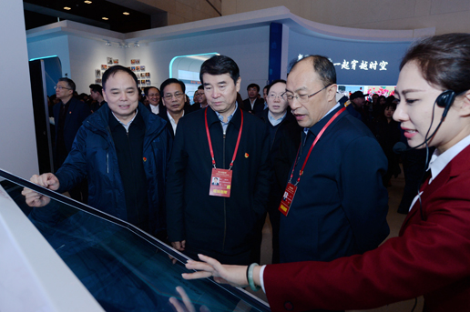 下午2時許,劉愛力帶領(lǐng)黨組成員和總部機關(guān)干部職工代表走進展廳參觀展覽。黨的十一屆三中全會等反映黨中央推進改革開放重大時間節(jié)點、重大歷史事件、重大決策部署的歷史照片,拉開中國農(nóng)村改革大幕的安徽小崗村18位農(nóng)民按下包產(chǎn)到戶“紅手印”的雕塑……逼真的實物模型、翔實的圖片圖表、豐富的視頻資料,吸引了大家的目光,他們不時停下腳步仔細觀看,聽取工作人員講解,并詢問有關(guān)情況。在《關(guān)鍵抉擇——黨中央推進改革開放的戰(zhàn)略擘畫》展區(qū),大家駐足良久,認真聆聽、回顧了黨中央在重大時間節(jié)點、重大歷史事件中作出的重大決策部署,推進改革開放的頂層設(shè)計。