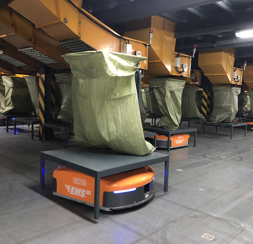 “雙11”期間,在郵政速遞物流華中(武漢)陸路郵件處理中心每天都能看到智能分揀機(jī)器人“橙色金剛”以每秒2米的速度繁忙穿梭。今年“雙11”,該處理中心新投入40臺(tái)頂升式搬運(yùn)機(jī)器人和25臺(tái)大件分揀機(jī)器人,郵件處理效率有效提升。 □湖北記者 余麗 攝