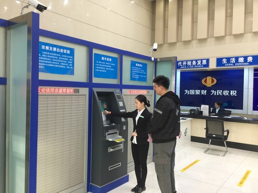 四平市鐵西郵政支局是全市客流量最大的網(wǎng)點(diǎn),走進(jìn)廳堂,最吸引眼球的便是廳堂內(nèi)設(shè)置的5臺(tái)自助報(bào)稅設(shè)備,四平市郵政分公司引進(jìn)了智能自助設(shè)備,開(kāi)啟了“智慧稅務(wù)”的新篇章?!皠傞_(kāi)始我們粘貼了‘傻瓜式’操作流程引導(dǎo)圖,但自助機(jī)的利用率依然不高,我就成了納稅人的自助顧問(wèn),所有廳堂的業(yè)務(wù),我都能解決?!辫F西支局大堂經(jīng)理張爽說(shuō)。納稅人通過(guò)自助設(shè)備從申請(qǐng)代開(kāi)發(fā)票到一張發(fā)票拿到手僅需要短短的兩分鐘時(shí)間,與人工辦理發(fā)票代開(kāi)相比,效率提高數(shù)倍。