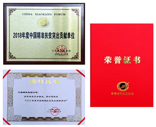 12月15日,由中國(guó)扶貧開(kāi)發(fā)協(xié)會(huì)、國(guó)家信息中心、求是《小康》雜志社聯(lián)合主辦,以“高質(zhì)量發(fā)展與決勝全面小康”為主題的2018第十三屆中國(guó)全面小康論壇在北京舉行。中國(guó)郵政集團(tuán)公司榮獲“2018年度中國(guó)精準(zhǔn)扶貧突出貢獻(xiàn)單位”。