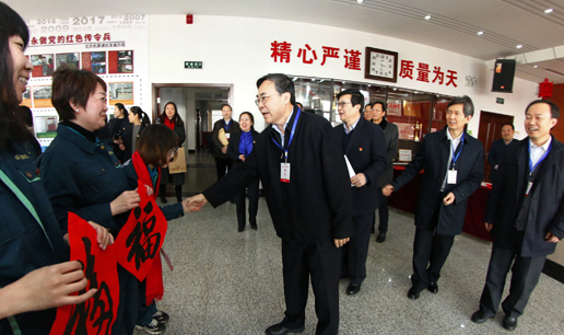 劉愛力觀看北京機要通信局員工書寫“福”字,為大家送上新春祝福