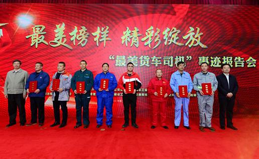 交通運(yùn)輸部、中華全國(guó)總工會(huì)有關(guān)領(lǐng)導(dǎo)出席報(bào)告會(huì)并為“最美貨車司機(jī)”頒發(fā)證書(shū),楊全忠作為獲獎(jiǎng)代表作了交流發(fā)言。