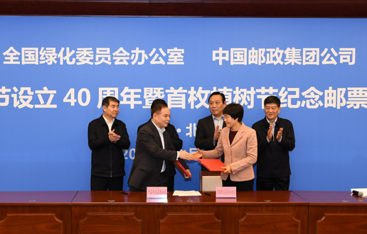 3月11日,中國(guó)郵政集團(tuán)公司與全國(guó)綠化委員會(huì)辦公室在京共同舉辦紀(jì)念植樹節(jié)設(shè)立40周年暨首枚植樹節(jié)紀(jì)念郵票發(fā)布儀式,并現(xiàn)場(chǎng)簽署合作框架協(xié)議。全國(guó)綠化委員會(huì)委員、國(guó)家林業(yè)和草原局副局長(zhǎng)劉東生,國(guó)家郵政局副局長(zhǎng)戴應(yīng)軍,中國(guó)郵政集團(tuán)公司黨組副書記李丕征、副總經(jīng)理張榮林,全國(guó)綠化委員會(huì)辦公室專職副主任胡章翠等出席發(fā)布儀式。