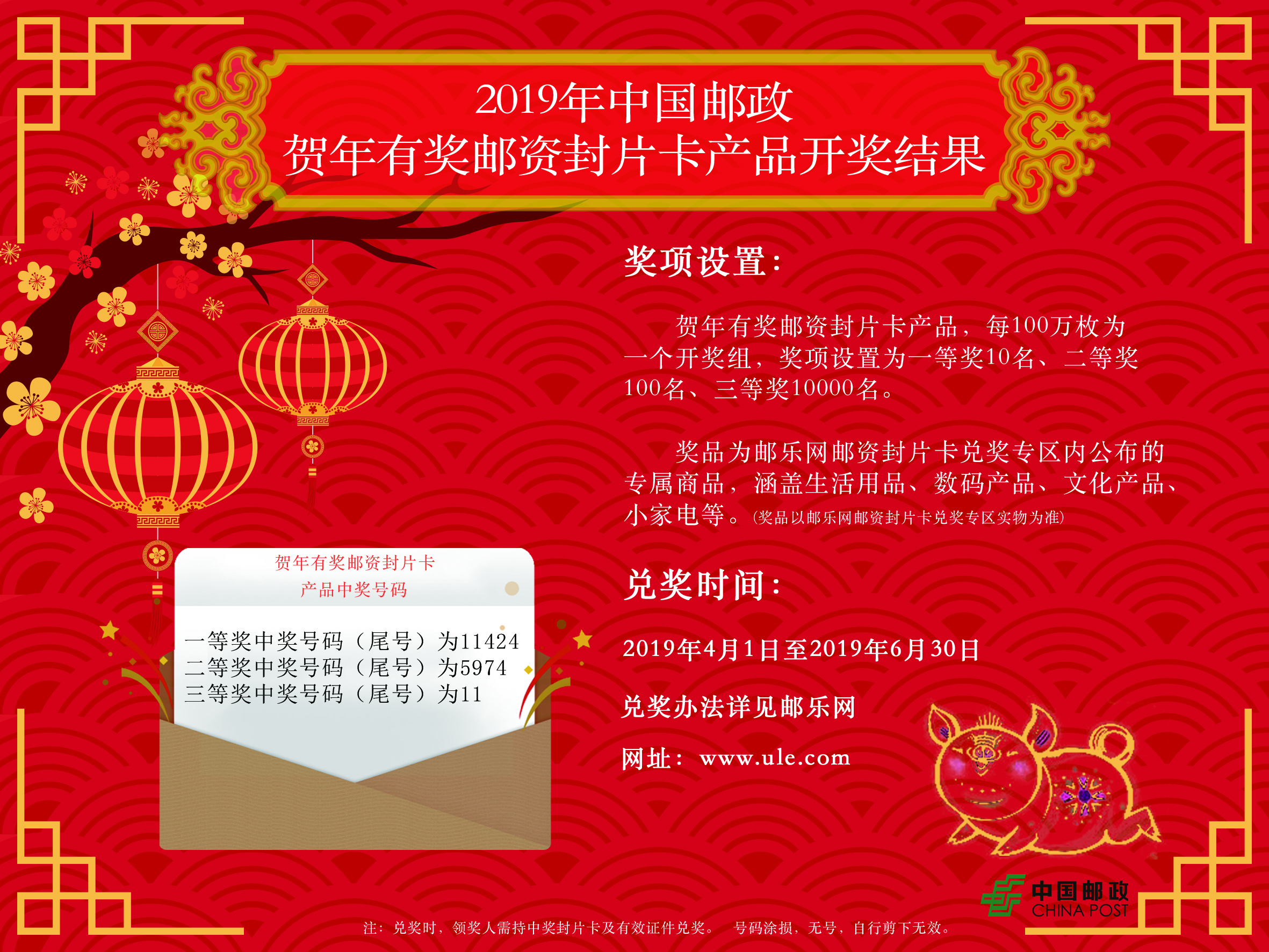 賀年有獎郵資封片卡產(chǎn)品中獎號碼