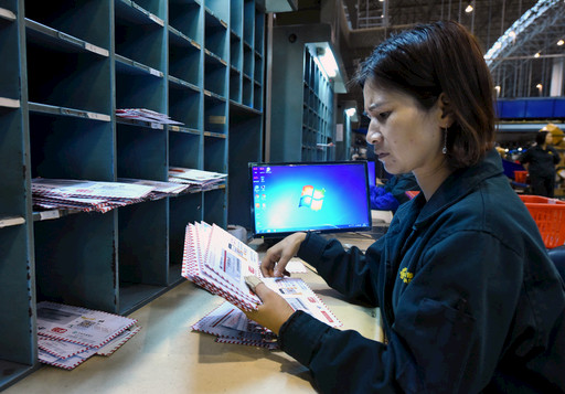 現(xiàn)代郵政自動化水平已經(jīng)很高,但手工分揀仍然是必要和有益的補(bǔ)充,圖為郵件處理中心外景。