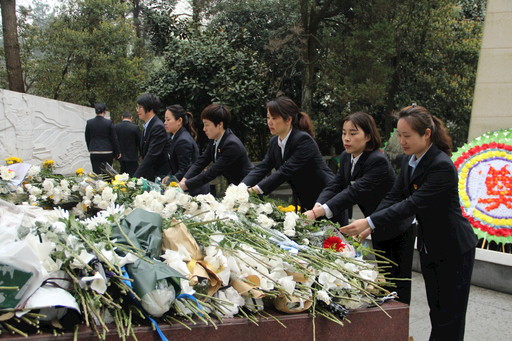 安吉縣支行的黨員們向革命先烈獻(xiàn)花。