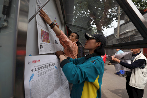 東四郵局熱情的服務(wù)和任勞任怨的精神,讓周邊百姓深切感受到社會大家庭的溫暖和諧,也傳遞著良好的社會風(fēng)氣。圖為東四郵局投遞員劉小梅幫助社區(qū)志愿者更換閱報欄報紙。