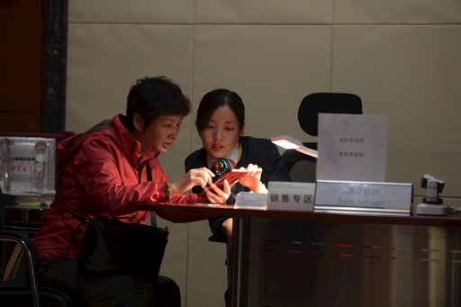 新時代的年輕員工從上一代東四郵政人手中接過接力棒,繼續(xù)探索親情服務(wù)的新內(nèi)涵。圖為理財經(jīng)理張婷婷指導(dǎo)用戶使用手機銀行辦理業(yè)務(wù)。