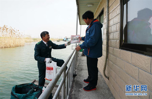唐真亞是江蘇省淮安市洪澤區(qū)老子山鎮(zhèn)郵遞員,今年55歲。整整20個年頭,唐真亞在水況復雜的洪澤湖上,攜帶郵件劃出了20萬公里的“水上郵路”,贏得湖區(qū)漁民的由衷贊譽。