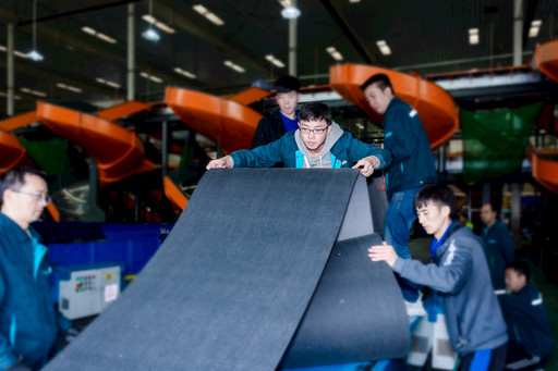 該處理中心非常重視設備維護,近期對車間內(nèi)的所有設備進行地毯式排查,確保旺季生產(chǎn)設備正常運行。圖為設備維護人員正在更換伸縮膠帶機皮帶。 □談勇 攝影報道