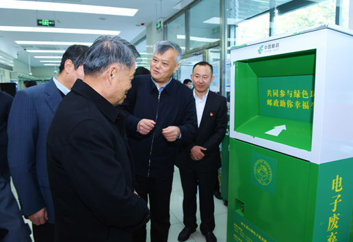 走進(jìn)百萬莊支局營業(yè)廳,楊傳堂一行首先觀看了中國郵政綠色行動(dòng)宣傳片。中國郵政于2018年率先啟動(dòng)了綠色行動(dòng),系統(tǒng)部署綠色包裝、綠色運(yùn)輸和綠色金融三大工程,下發(fā)了綠色行動(dòng)三年規(guī)劃,全力以赴將綠色行動(dòng)推向深入,致力于治理企業(yè)包裝污染和運(yùn)輸污染、致力于支持全社會(huì)污染防治工作。李丕征還介紹了中國郵政成立綠色包裝創(chuàng)新實(shí)驗(yàn)室、加強(qiáng)綠色包裝技術(shù)創(chuàng)新研發(fā)等情況,楊傳堂對(duì)此給予肯定。
