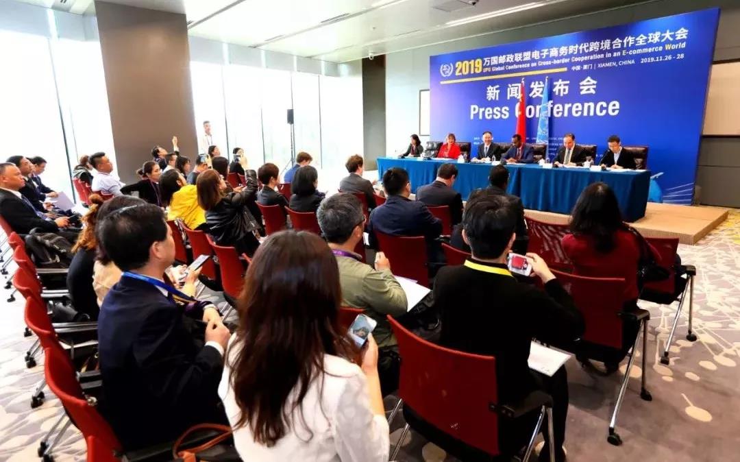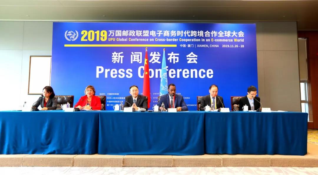 11月26日,萬國郵聯(lián)國際局總局長比沙爾·侯賽因、世界海關(guān)組織守法便利司司長安娜·伊諾霍薩、中國國家郵政局局長馬軍勝、中國郵政集團(tuán)公司副總經(jīng)理張榮林出席萬國郵聯(lián)電子商務(wù)時(shí)代跨境合作全球大會新聞發(fā)布會,圍繞增進(jìn)全球郵政、海關(guān)、鐵路、航空和跨境管理機(jī)構(gòu)之間的合作,發(fā)展完善全球郵政網(wǎng)絡(luò),促進(jìn)郵政供應(yīng)鏈的安全和便利化,推進(jìn)國際鐵路運(yùn)郵,推動(dòng)跨境電商和全球貿(mào)易可持續(xù)發(fā)展等主題向記者進(jìn)行了介紹并回答記者提問。