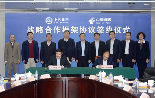 12月9日,中國郵政集團(tuán)公司在上海與上海汽車集團(tuán)股份有限公司(以下簡稱上汽集團(tuán))簽署戰(zhàn)略合作框架協(xié)議。中國郵政集團(tuán)公司董事長劉愛力、副總經(jīng)理康寧,上汽集團(tuán)董事長陳虹、總裁王曉秋、副總裁藍(lán)青松等出席??祵帯⑺{(lán)青松分別代表雙方簽署協(xié)議。