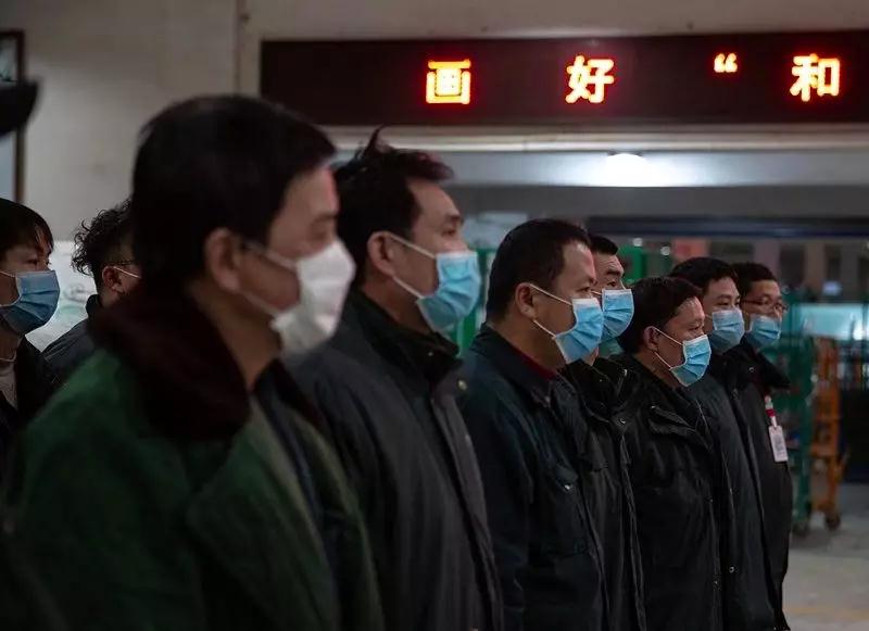 2月1日,武漢郵區(qū)中心局,上夜班的工作人員集合。這里目前24小時(shí)運(yùn)轉(zhuǎn),夜間也要處理數(shù)千件郵件。