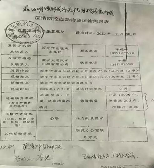 下午1:00,西安市分公司運(yùn)送此批物資的車輛剛剛停穩(wěn)在郵件處理中心接發(fā)平臺(tái)前,西安郵區(qū)中心局緊急抽調(diào)的裝車人員便開(kāi)始了緊張的卸車裝車作業(yè)。下午2:00,抗疫物資裝車完畢,運(yùn)輸中心駕駛員桑為民和李寧再次踏上馳援武漢的征程,并于2月1日早8:10順利到達(dá)卸貨點(diǎn),將疫情防控應(yīng)急物資安全送達(dá)接收方——武漢大通汽車出租有限公司。“感謝中國(guó)郵政!”收到急需物資的客戶忍不住在簽收單上寫下自己的心聲??吹浇邮辗叫盾嚾耸植蛔悖{駛員桑為民、李寧顧不得一路疲憊,又主動(dòng)幫助卸車,盡快將應(yīng)急物資交付客戶手中。這次特殊的郵運(yùn)工作也得到了社會(huì)媒體的關(guān)注,1月31日晚,陜西電視臺(tái)《都市快報(bào)》欄目對(duì)此事進(jìn)行了報(bào)道。