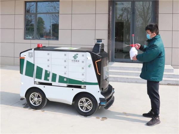 自正月初二起,無人投遞車——“漢馬”便開始忙碌運作起來,“漢馬”投遞車承擔起了仙桃市政府及直屬單位區(qū)域內的投遞任務。每天清晨,投遞員昌沁便早早的將需要妥投的郵件、報刊進行清分,攜帶至“智能郵局”站點,接下來,他并沒有立刻將郵件逐一放入投遞車格口,而是先拿出清潔酒精為“漢馬”來一次全身消毒,這是他近幾天以來,每天都要做的工作,早晚各一次,“這樣能夠徹底杜絕病毒的傳播,讓客戶放心使用無人車取郵件,也讓我們自己感到更加安心?!辈哒f。