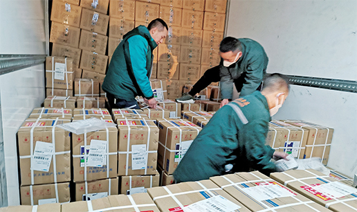 “有一批運(yùn)送到武漢的物資亟須衢州運(yùn)送?!?月28日下午,浙江省衢州市郵政分公司接到省分公司指揮中心電話,得知位于開化縣的浙江卓?jī)|工貿(mào)有限公司有40萬套外科手套和10萬套檢查手套等醫(yī)用物資要運(yùn)送。同日下午,該分公司又接到省郵政寄遞事業(yè)部的電話,江山市浙江星菜農(nóng)業(yè)科技有限公司捐贈(zèng)價(jià)值40余萬元的蔬菜。兩批物資分別需運(yùn)達(dá)至杭州相應(yīng)接收點(diǎn),再統(tǒng)一發(fā)往武漢。衢州市分公司迅速制定運(yùn)輸計(jì)劃,開通特快專線,29日清晨,3輛郵車分別前往開化和江山,上門攬收2466件防疫物資,于11點(diǎn)30分、14點(diǎn)準(zhǔn)時(shí)發(fā)運(yùn),直達(dá)杭州轉(zhuǎn)車,統(tǒng)一發(fā)往武漢紅十字會(huì)指定地點(diǎn)?!躐T君 攝影報(bào)道