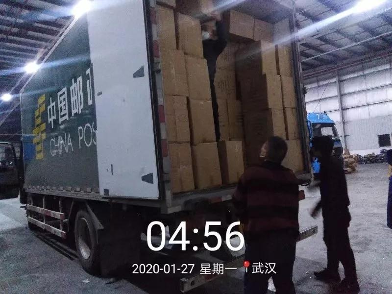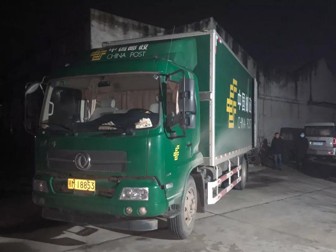 23時30分,2萬件防護(hù)服共計400箱物資在彭場工業(yè)園開始裝車。在2個多小時的裝車工作后,27日凌晨2時,滿滿一車的防疫物資由駕押員廖棟駕駛郵車送往武漢。