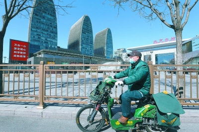 侯毅是西城區(qū)西外大街郵政支局的投遞員,湖北襄陽(yáng)人,因?yàn)楣?jié)日?qǐng)?jiān)守,他已三年沒(méi)回襄陽(yáng)老家過(guò)年了,今年也不例外。父母年事已高,又不會(huì)用智能手機(jī),每次都要把電話撥到幾個(gè)堂兄弟那里詢問(wèn)家里的情況。他們之中有人是城管,有人是交警。侄女是一名白衣天使,在當(dāng)?shù)氐娜嗣襻t(yī)院工作,在這次疫情中勇敢地沖在最前線。