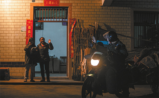 晚上10:30,家住重慶市巴南區(qū)木洞鎮(zhèn)的張玉寧同學收到教材后,開心地與爸爸一道將投遞員周繼勝送出家門。朱亞坤 攝