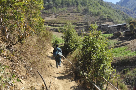 一邊是刀砍斧鑿的絕壁,一邊是波濤洶涌的怒江,沿著泥濘的道路從六庫驅(qū)車沿六丙公路蜿蜒50多公里,瀘水市稱桿鄉(xiāng)映入眼簾。