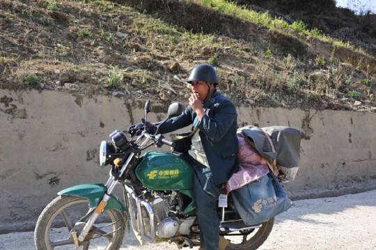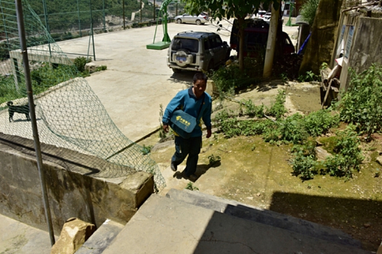 簡單吃過中飯,桑南才將郵袋綁在摩托車后座上,彎腰緊了緊鞋帶,再跨上磨得泛白的帆布郵包,驅(qū)車向大山深處進發(fā)。