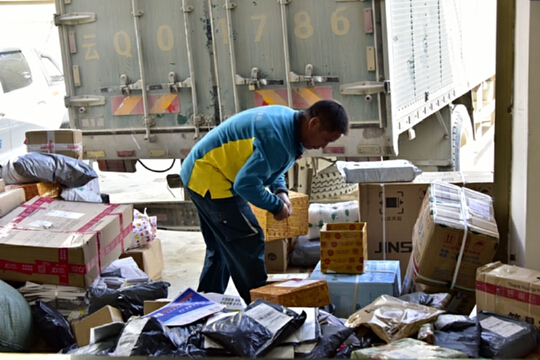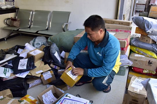 新年第一天,盡管屬法定節(jié)假日,但從州府六庫方向發(fā)來的郵車還是如約抵達郵政所。桑南才打開車廂門——又是滿滿一車包裹!桑南才記得,1987年自己剛到所里上班時,郵車隔天才一班,一個月也就200來份郵件?,F(xiàn)在每天兩班郵車,一天的郵件量都快到200件了。