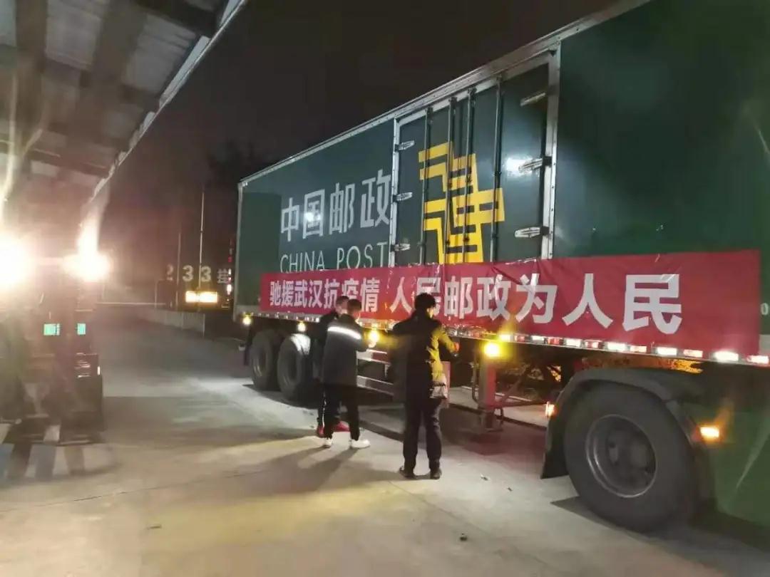 來自全國各地的各類物資,不分晝夜地被郵政運輸車送進疫區(qū)。