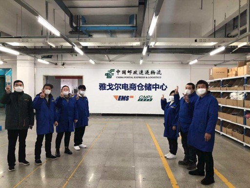 疫情期間進(jìn)駐雅戈?duì)栯娚虃}儲中心的郵政員工。