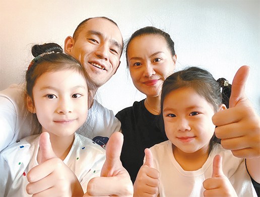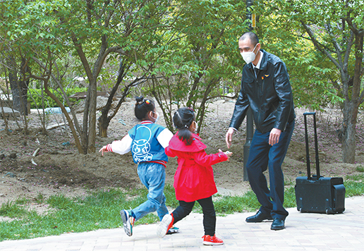3 月26 日,隔離期滿回家。王曉輝剛進小區(qū),兩個寶貝兒就歡快地迎上前去。