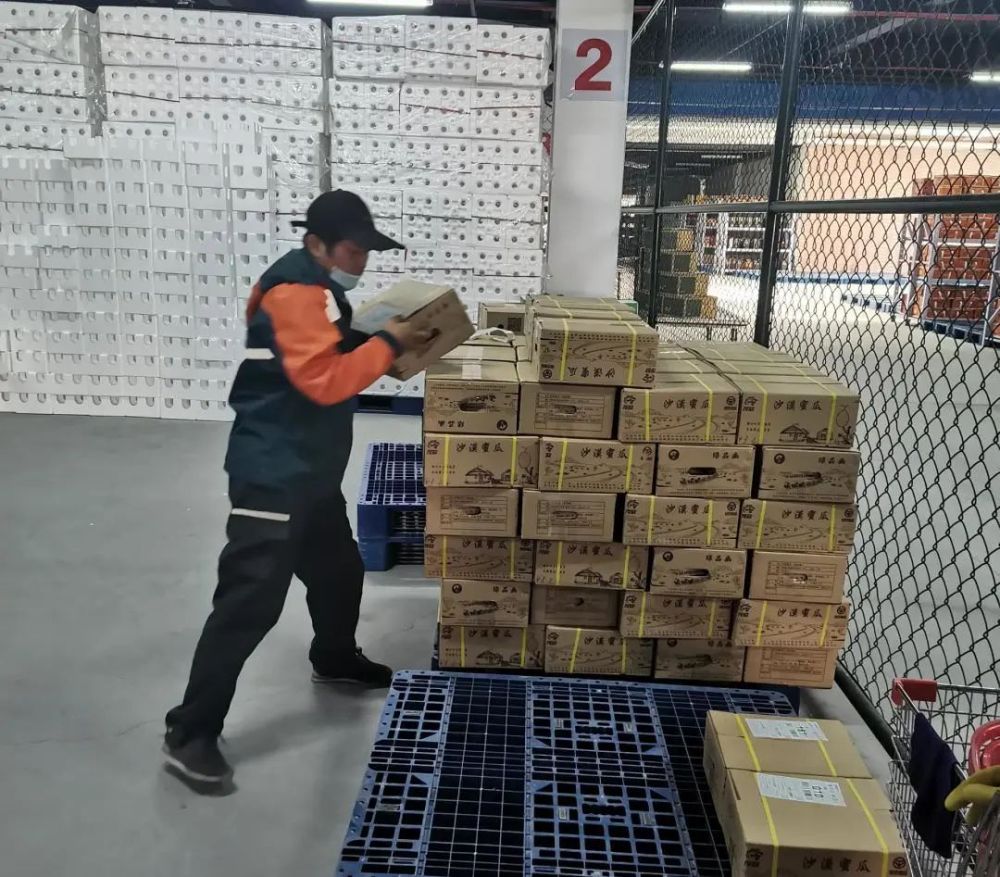 4月15日,一輛郵車駛入巴彥淖爾市磴口縣物流中心,車一停下,駐派基地的兩名負責裝箱、貼單的郵政員工立即和郵車司機配合,將早已打包好的“早黃蜜”瓜搬上郵車,不一會兒功夫,就將當天發(fā)運的270件安排妥當。截至目前,郵政共發(fā)運“早黃蜜”近500件3000余斤。
