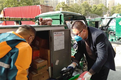 幫扶投遞期間,黨員佩戴黨徽,亮出身份,也贏得了小區(qū)物業(yè)和社區(qū)防控人員的贊揚(yáng)。“這個(gè)時(shí)候,也就你們郵政還在堅(jiān)持,不愧是‘國(guó)字號(hào)’?!蓖ê鸵拙颖痹返拈T(mén)衛(wèi)每天將門(mén)口的一塊空地打掃干凈,讓幫扶人員“擺攤”,有時(shí)還幫忙通知居民來(lái)領(lǐng)取郵件。