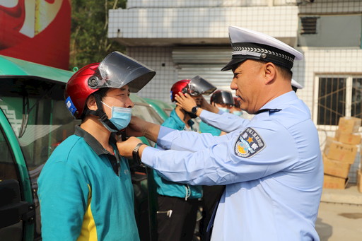 5月15日,山西省陽(yáng)泉市交警二大隊(duì)聯(lián)合山西省陽(yáng)泉市郵政分公司共同開展 “警企合作共建文明交通,‘一盔一帶’守護(hù)安全出行 ”勸導(dǎo)快遞騎手佩戴安全頭盔活動(dòng)。該大隊(duì)長(zhǎng)賈勇慧將10個(gè)安全頭盔贈(zèng)給該分公司投遞人員,倡導(dǎo)投遞員駕車系好安全帶,駕乘摩托車、電動(dòng)車戴好安全頭盔等,做到安全駕駛、生命第一。 □劉靜雅 攝影報(bào)道