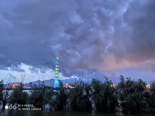 17:30,烏云突然壓境,伴隨著一道劃破天際的閃電,空中炸響了一聲驚雷,頃刻間狂風驟起,暴雨傾盆,在堤壩附近的群眾紛紛躲進了我們的值班棚應(yīng)急避雨。