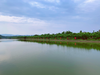 一帶澄澈碧綠的河水緩緩流淌,岸邊樹(shù)木蔥蘢、綠草如茵。有畫(huà)者在依河寫(xiě)生,有行者在閑適漫步,不遠(yuǎn)處嘹亮悠長(zhǎng)的嗩吶聲隨風(fēng)飄揚(yáng)。