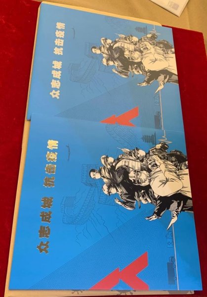 贈送的《眾志成城 抗擊疫情》郵票郵折將支援湖北的醫(yī)療隊員抗疫照片制成了肖像郵票紀念張,匯同一整版抗疫郵票和絹質(zhì)首日封制作成精美的郵折,贈送給奮戰(zhàn)在抗擊疫情一線的醫(yī)務工作者,表達對他們勇敢、堅強、奉獻精神的敬佩之情。每個郵折都是唯一編碼,具有特殊的紀念意義。