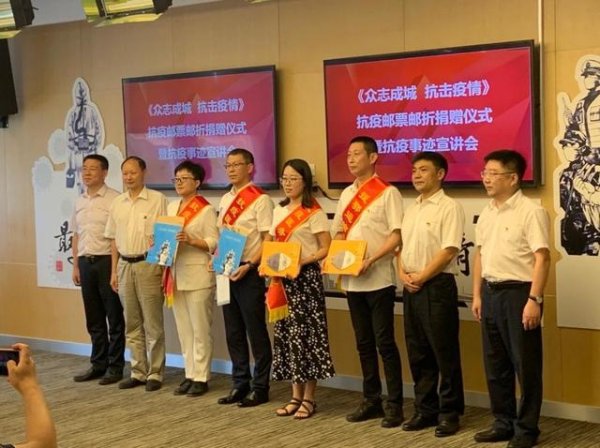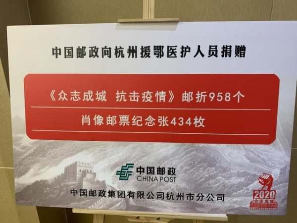 8月20日上午,在杭州郵政分公司大樓的報告廳,由杭州市衛(wèi)生健康委員會、杭州市市郵政管理局、杭州郵政分公司聯(lián)合舉辦《眾志成城 抗擊疫情》郵折捐贈儀式。杭州郵政分公司向杭州援鄂抗疫醫(yī)務工作者捐贈《眾志成城 抗擊疫情》郵票郵折共計958套;肖像郵票紀念張434張。此次捐贈給醫(yī)務工作者的《眾志成城 抗擊疫情》紀念郵折,是中國郵政特別發(fā)行的郵票,用于銘記中國力量和中國精神,并將郵票發(fā)行收入捐獻用于救災抗疫。