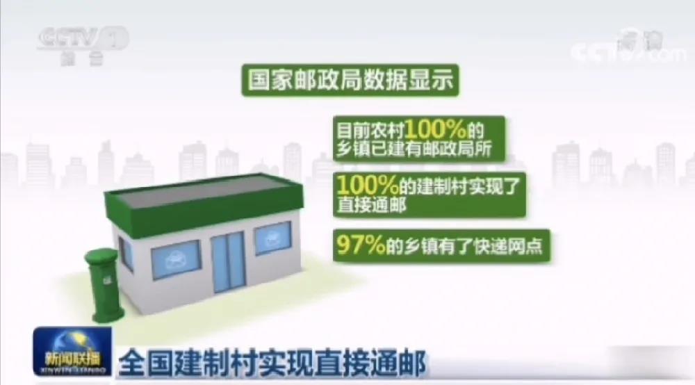 農(nóng)村100%的鄉(xiāng)鎮(zhèn)已建有郵政局所