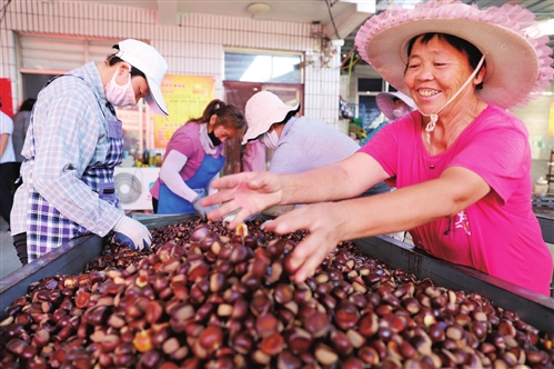 泰山,五岳之首,連綿的山地和獨特的小氣候為泰山板栗提供了得天獨厚的自然環(huán)境,每年的9、10月份,是泰山板栗成熟的季節(jié)。但酒香也怕巷子深。近年來,郵儲銀行山東省泰安市分行通過“郵政+銀行+龍頭企業(yè)+合作社+農(nóng)戶(貧困戶)”的產(chǎn)業(yè)精準扶貧模式,助力泰山板栗走出大山,幫助栗農(nóng)增收致富。