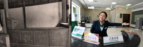 跨過(guò)高高的門檻,走進(jìn)湘鄂西省郵政總局舊址,看到木質(zhì)的柜臺(tái)上,一個(gè)陳舊的木質(zhì)信箱靜靜地立在一旁,穿越了那段歷史,展現(xiàn)在我們面前。我們仿佛看到郵政前輩們?cè)诠衽_(tái)前認(rèn)真地工作。在現(xiàn)代郵政寬敞明亮的營(yíng)業(yè)廳內(nèi),拉開(kāi)透明的玻璃門,大堂經(jīng)理微笑著熱情地迎來(lái)送往,堅(jiān)守著人民郵政為人民的服務(wù)宗旨。