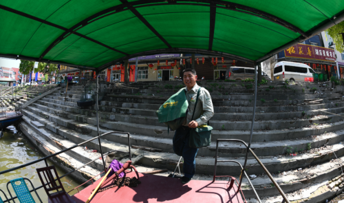 而這片水域的水上郵路,郵政人至今還在行走。濱湖郵政支局投遞員黃純?nèi)褪瞧渲幸粏T。