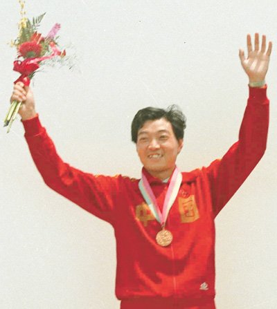 領(lǐng)獎臺上的許海峰。新華社發(fā)