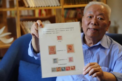 在保定市集郵協(xié)會(huì)副會(huì)長(zhǎng)馬天迪老先生那里,我們看到了這幾枚質(zhì)地并不華麗,設(shè)計(jì)并不精美,卻被馬老先生稱為“稀世珍郵”的郵票,據(jù)馬老先生介紹,其珍貴不僅是因?yàn)楝F(xiàn)存數(shù)量極其稀少,更因?yàn)樗旧硭N(yùn)含的意義重大。