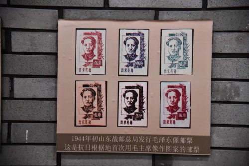 山東戰(zhàn)郵紀(jì)念館內(nèi), 首次用毛主席像作圖案的郵票,被擺放在一進(jìn)門的位置,被作為鎮(zhèn)館之寶。原山東省郵電管理局史志辦公室退休干部扈德玉曾參與編輯《中國(guó)解放區(qū)郵票史·華東卷(上)》,廣泛搜集戰(zhàn)郵資料,他說(shuō),抗日戰(zhàn)爭(zhēng)時(shí)期,在黨中央的正確領(lǐng)導(dǎo)下,抗日戰(zhàn)爭(zhēng)取得了可喜的成績(jī),毛澤東被人們崇敬,因此要發(fā)行這套郵票。據(jù)他向膠東戰(zhàn)郵管理局監(jiān)印員于安了解,該套郵票是在膠東的《大眾報(bào)》印刷廠印刷,不僅是中國(guó)首套,也是世界首套用毛主席像作圖案的郵票。
