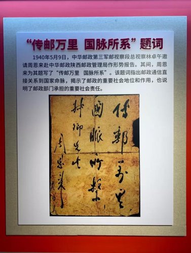 特別是在新民主主義革命時(shí)期,毛澤東題詞“人民郵電”,周恩來(lái)題詞“傳郵萬(wàn)里 國(guó)脈所系”等珍貴文物,充分反映了郵政在社會(huì)發(fā)展中的重要地位和作用,指出了郵政事業(yè)為人民服務(wù)的性質(zhì)宗旨,明確了郵政人的初心使命。